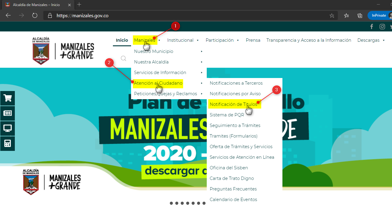 Ingrese a la página de la Alcaldía de Manizales: https://manizales.gov.co